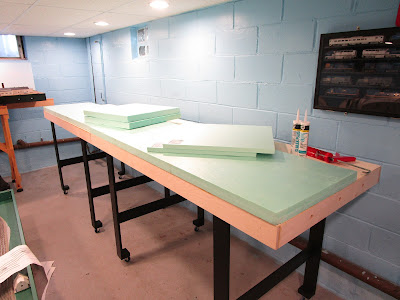 I topped the plywood with 2" thick extruded insulation foam, which is common place now for layouts. It is extremely light and strong and it is easily carved. This is important as I want to model the rolling terrain so common in New England.